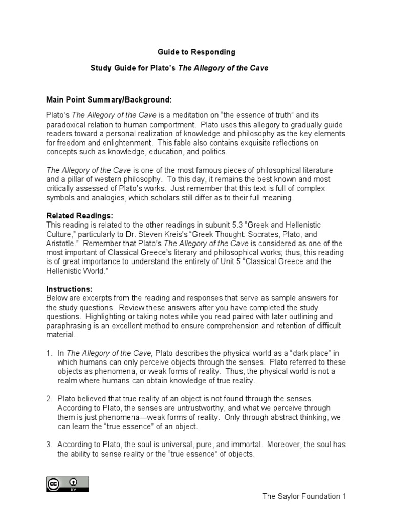 Reading Guide Allegory Of The Cave Pdf Plato Reality